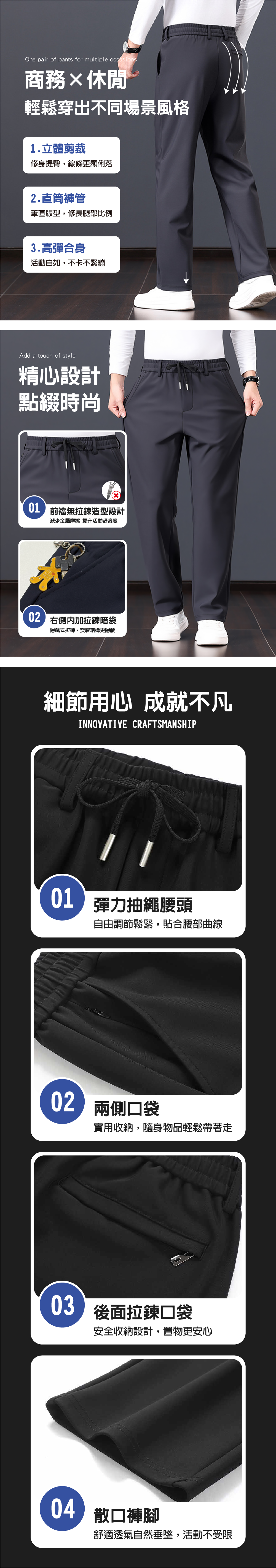 直筒褲管:自然垂墜,筆直版型,視覺修長腿部比例。
