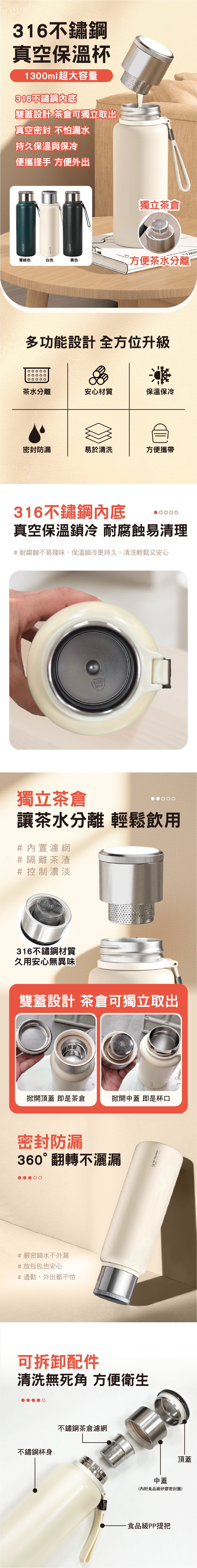316 不鏽鋼內底 × 茶水分離 × 雙蓋設計